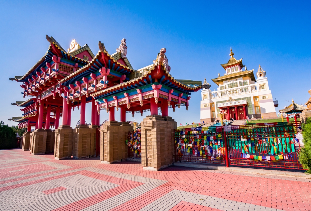 Калмыкия – край бесконечных, как океан, степных просторов с волшебными тюльпанными островами. Земля, по которой пролегал Великий Шёлковый путь, где возводила свои города Золотая Орда, здесь и сейчас можно найти их остатки. А еще в Элисте находится самый большой буддийский храм Калмыкии. Вглядываясь в его очертания, можно безошибочно определить влияние тибетской архитектуры.
