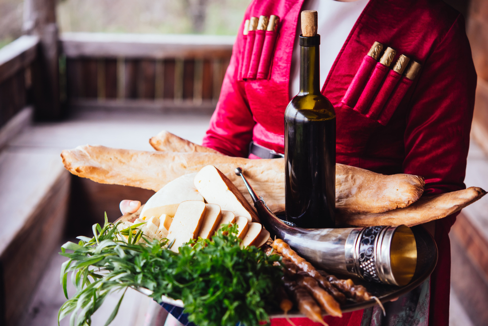 Погрузимся в атмосферу грузинского гостеприимства и традиций. Попробуем ароматный харчо, чахохбили, оджахури, свежие овощи, хачапури и, конечно, шашлык с домашним вином. Дегустация напитков (18+).